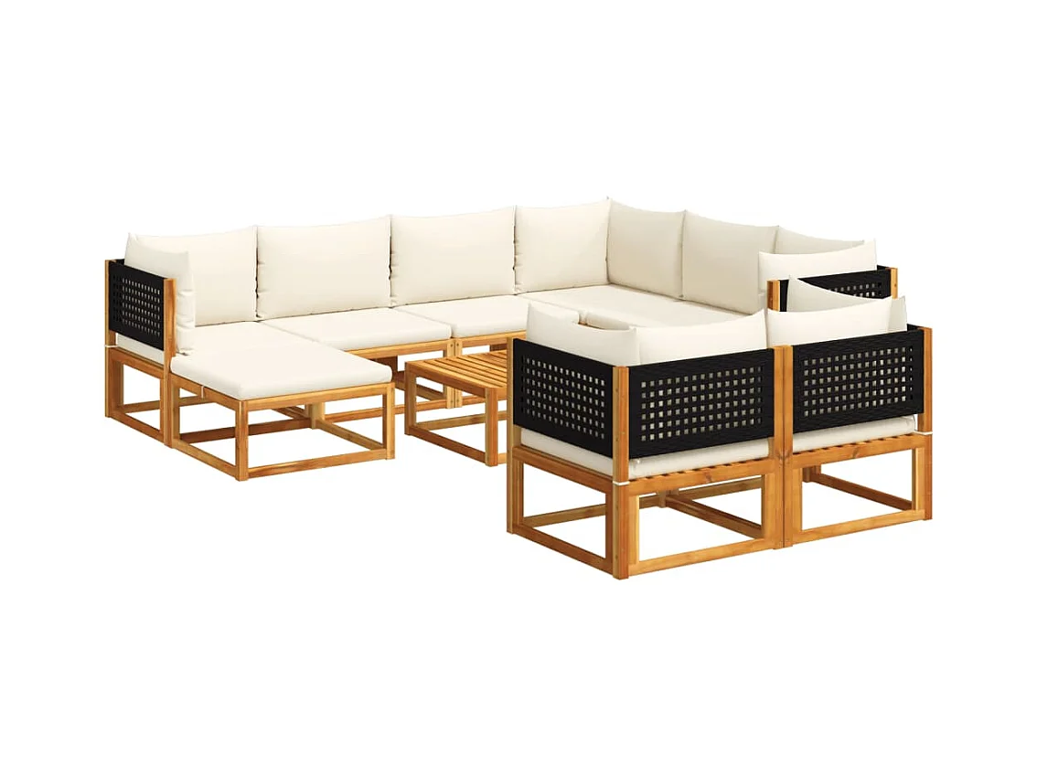10 pcs conjunto de sofás de jardim com almofadões acácia maciça