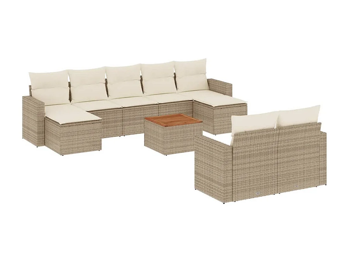Móveis de jardim com almofadas 10 unidades de resina tecida bege
