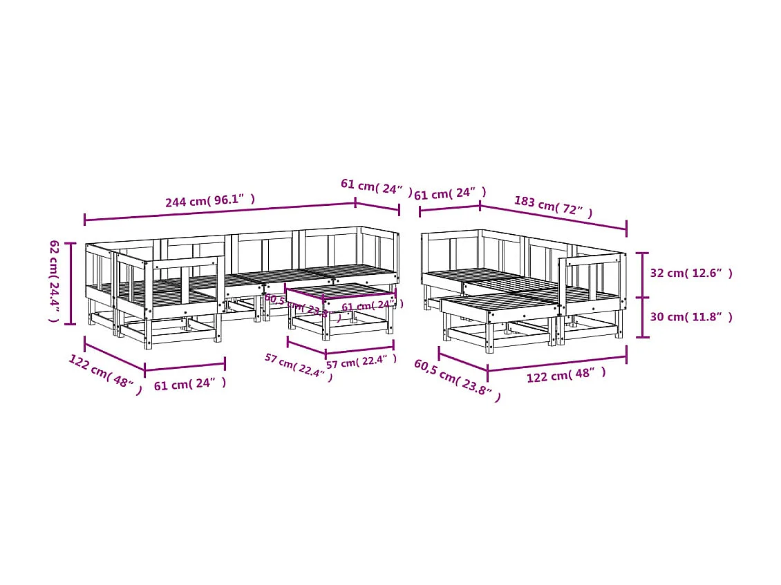 10 pcs conjunto lounge de jardim madeira de pinho impregnada