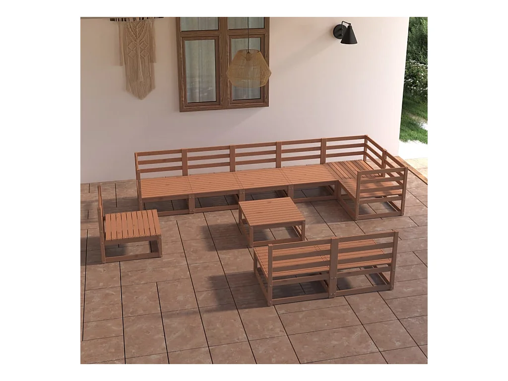 10 pcs conjunto lounge de jardim pinho maciço castanho mel