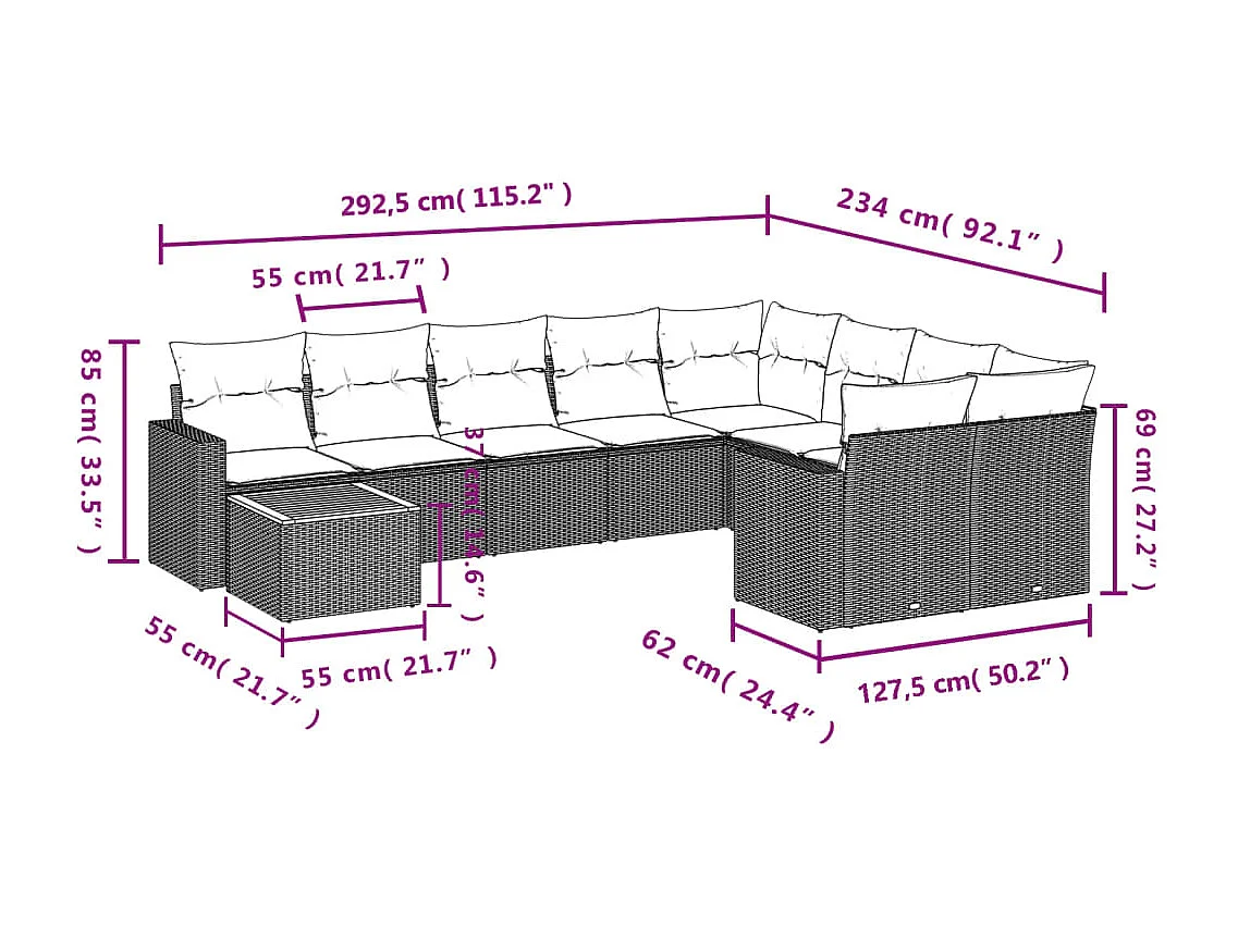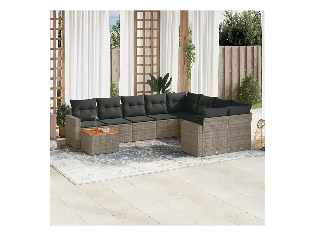 Móveis de jardim com almofadas 10 unidades de resina tecida cinza