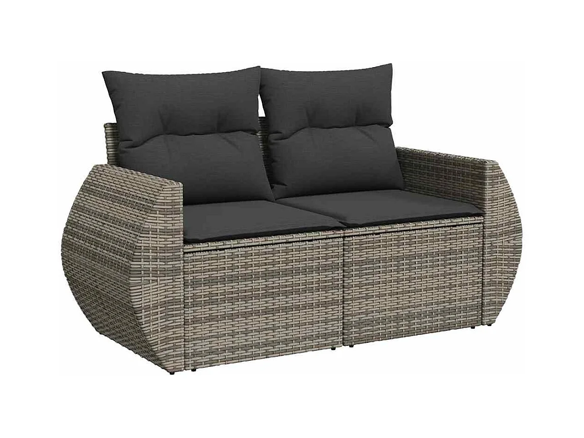 10 pcs conjunto sofás de jardim c/ almofadões vime PE cinzento