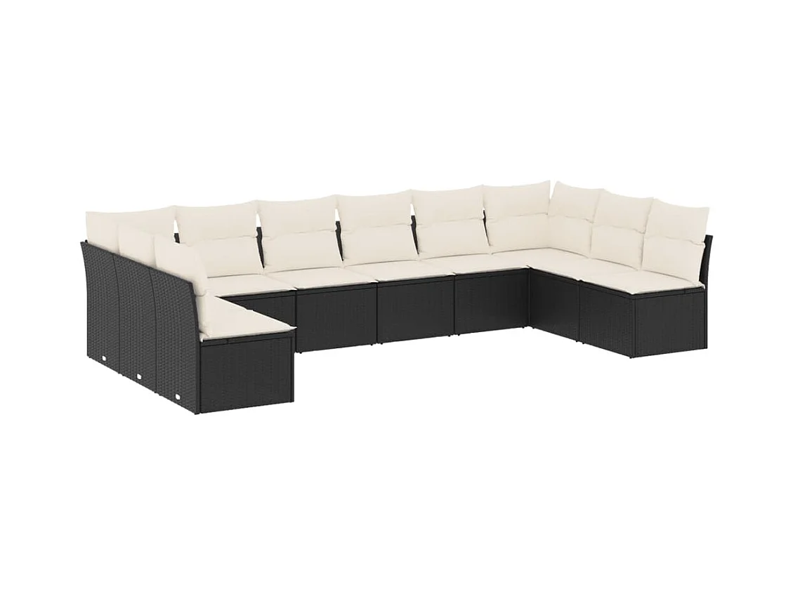 10 pcs conjunto sofás de jardim c/ almofadões vime PE preto