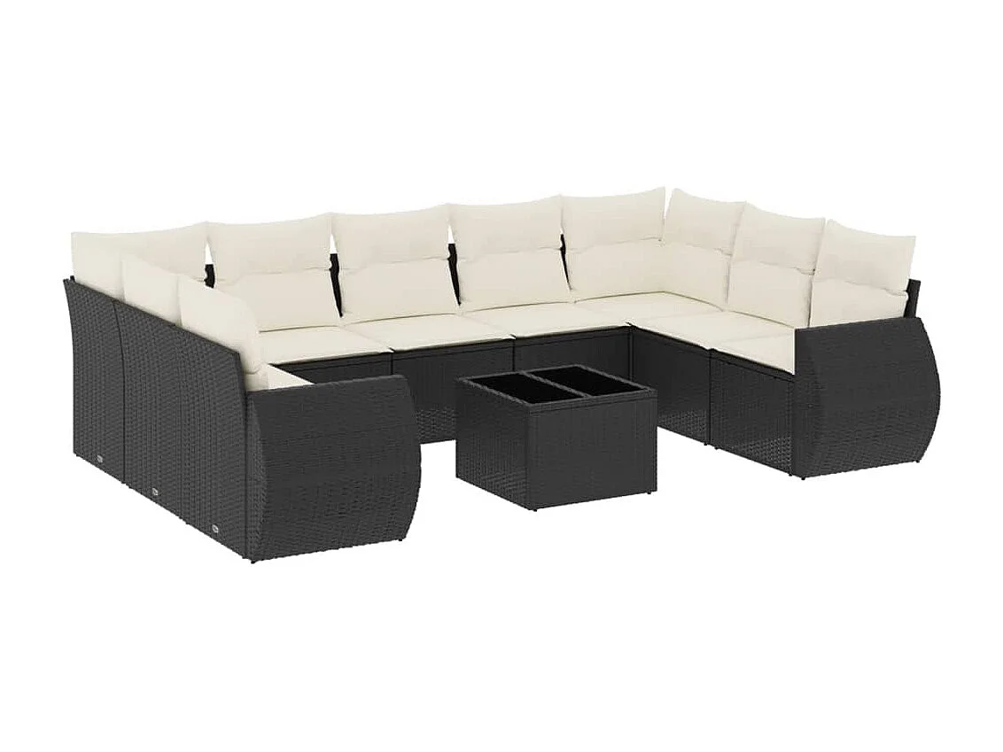 Móveis de jardim 10 unidades com almofadas de resina tecida preta