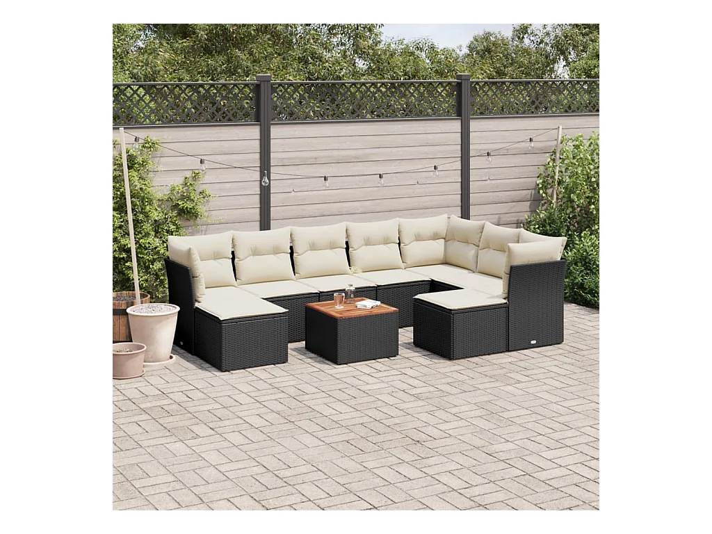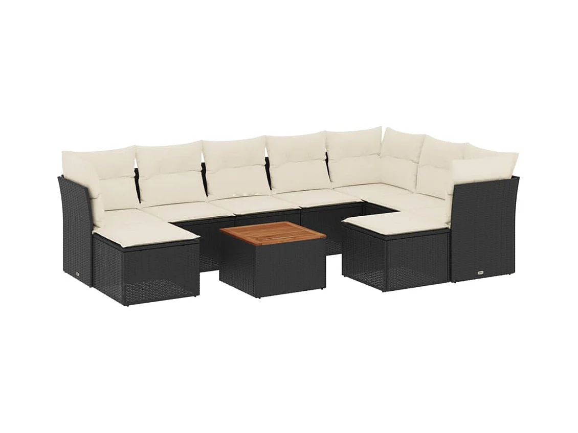 10 pcs conjunto sofás de jardim c/ almofadões vime PE preto