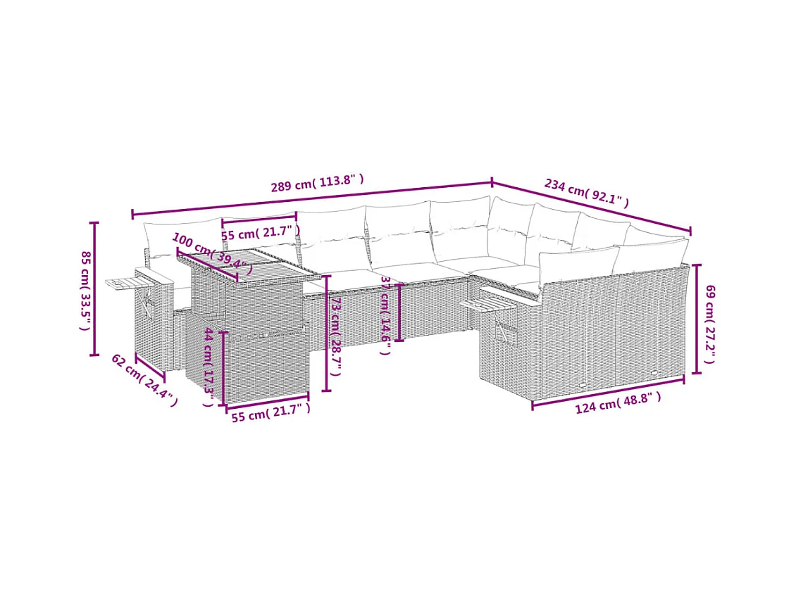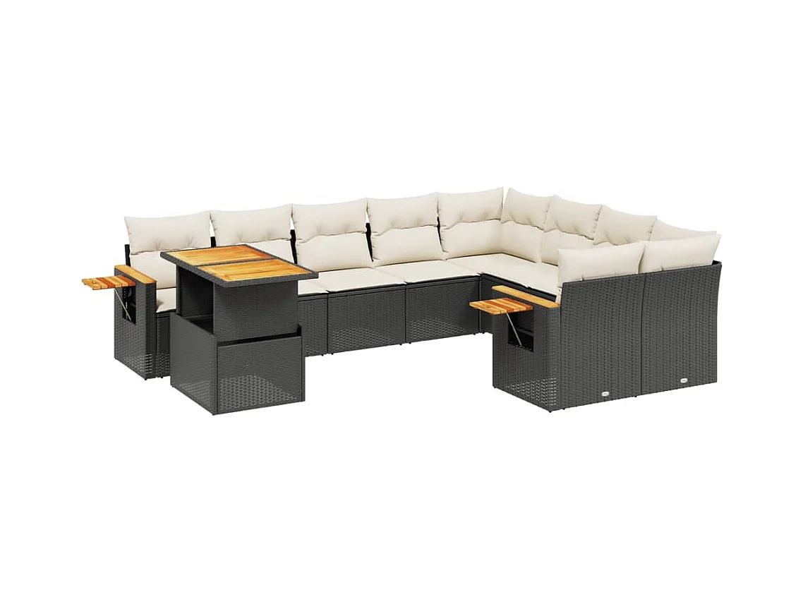 10 pcs conjunto sofás de jardim c/ almofadões vime PE preto