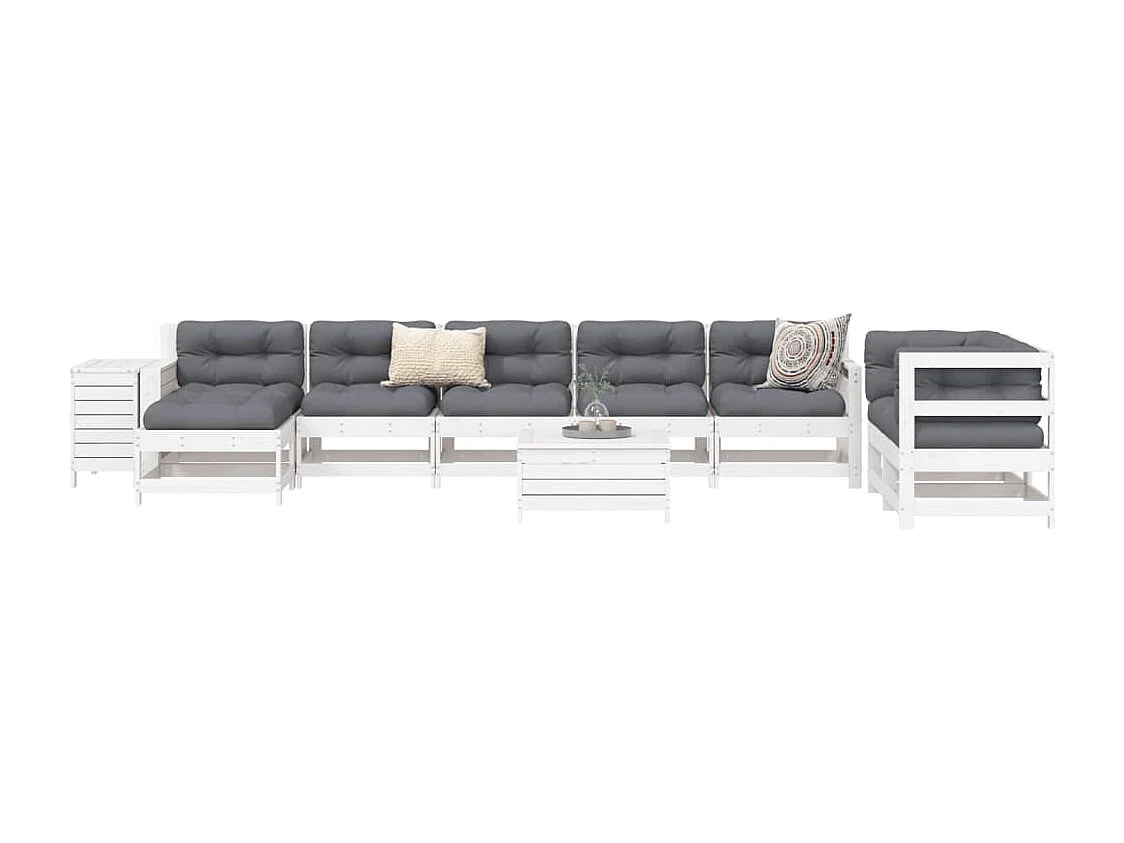 10 pcs conjunto sofás de jardim madeira de pinho maciço branco
