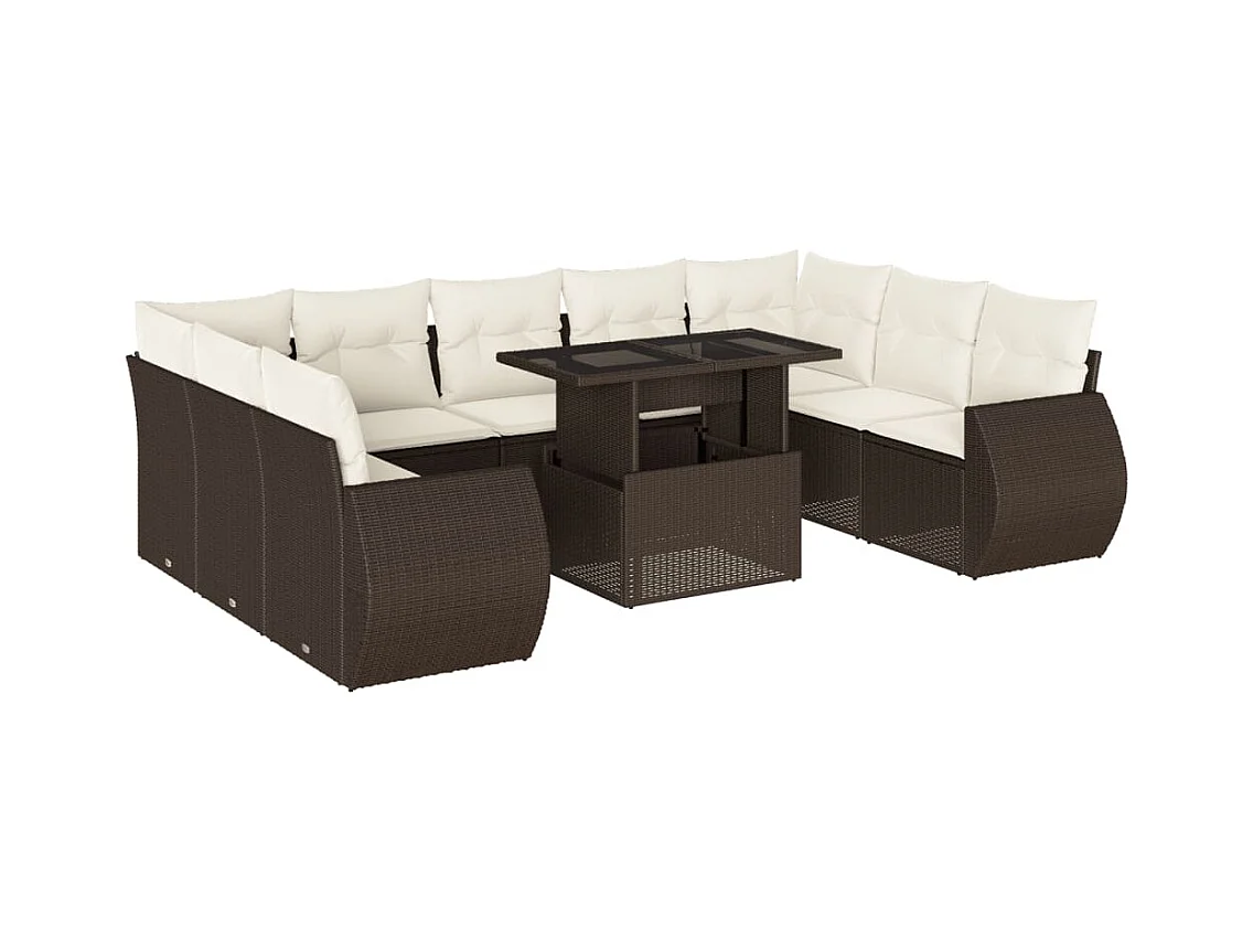 10 peças conj. sofás jardim com almofadões vime PE castanho