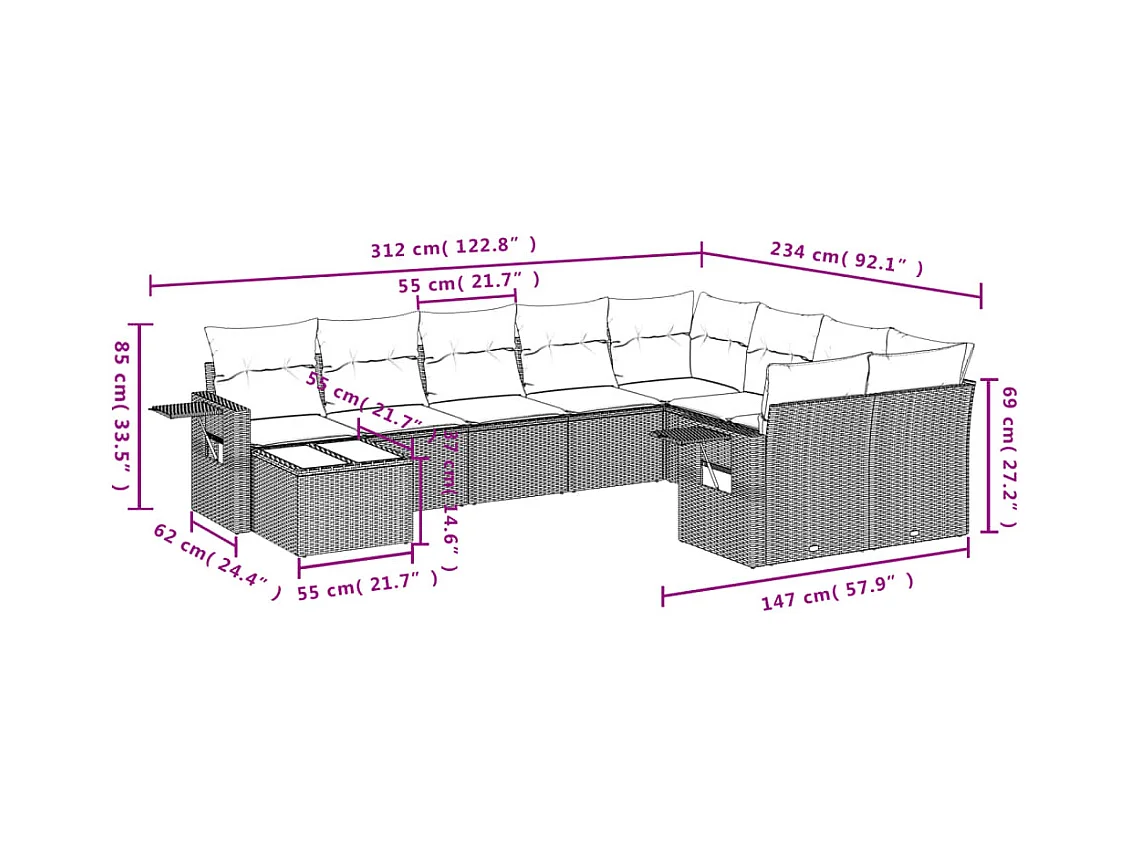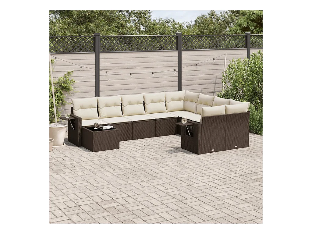 10 peças conj. sofás jardim com almofadões vime PE castanho
