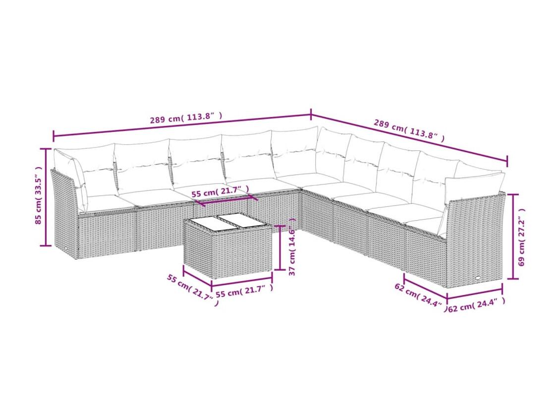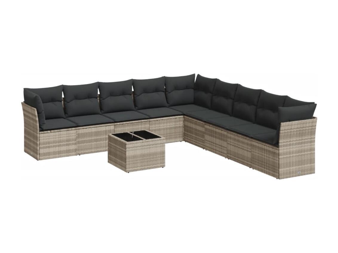 10 peças conj. sofás jardim com almofadões vime PE cinzento-claro