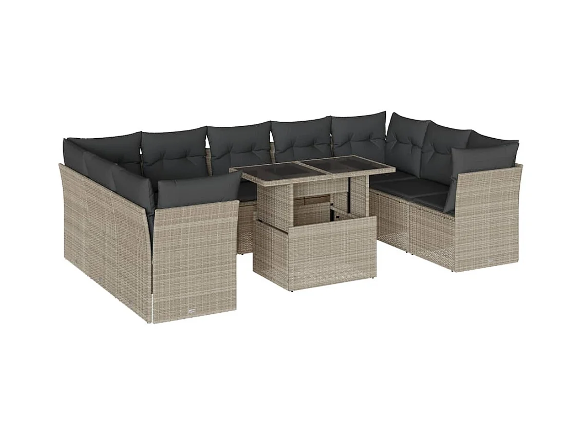 10 peças conj. sofás jardim com almofadões vime PE cinzento-claro