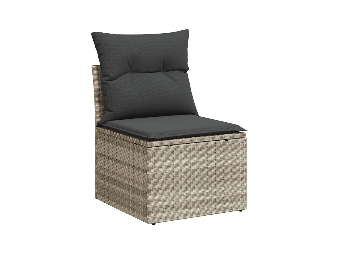 11 peças conjunto sofás de jardim com almofadões vime PE cinzento
