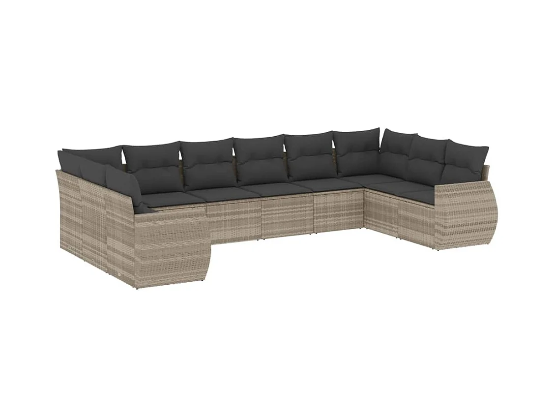 10 peças conj. sofás jardim com almofadões vime PE cinzento-claro