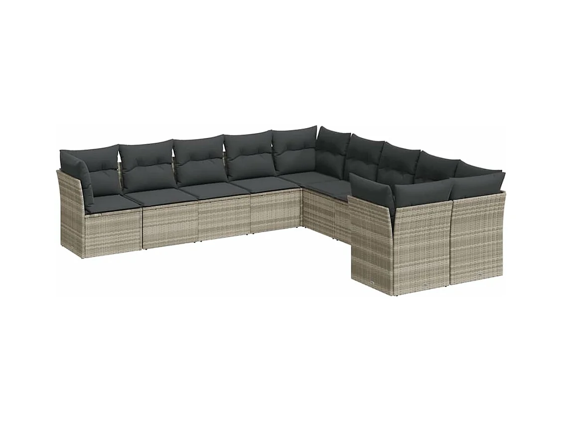 10 peças conj. sofás jardim com almofadões vime PE cinzento-claro
