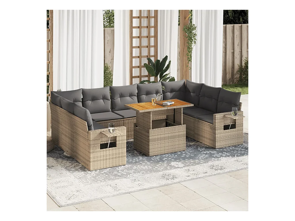 9 peças conjunto sofás jardim com almofadões vime PE/acácia bege