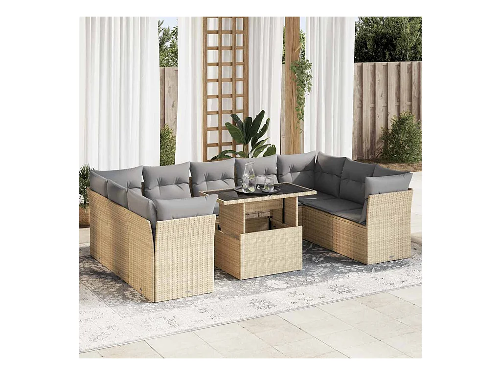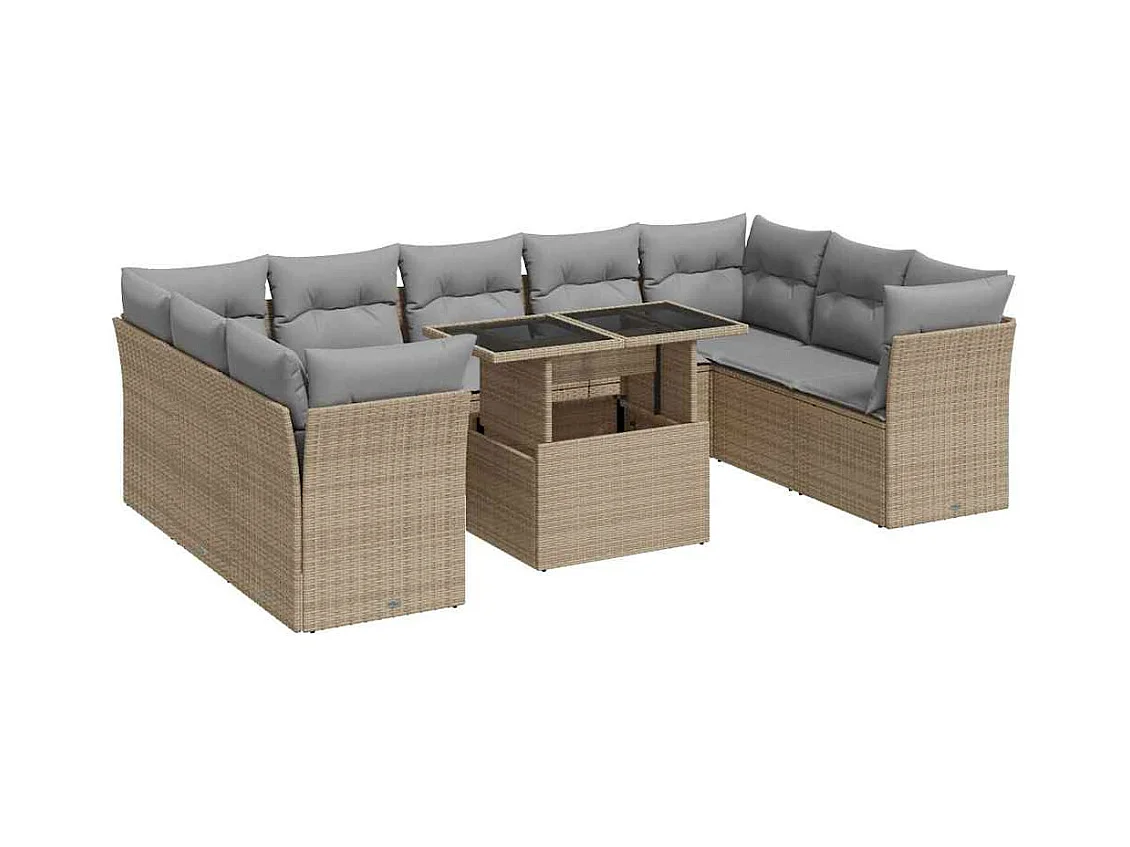 10 peças conj. sofás para jardim com almofadões vime PE/acácia bege