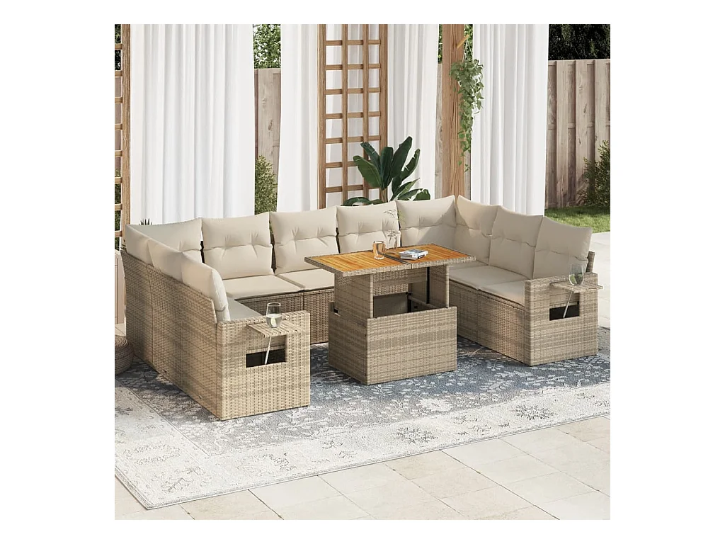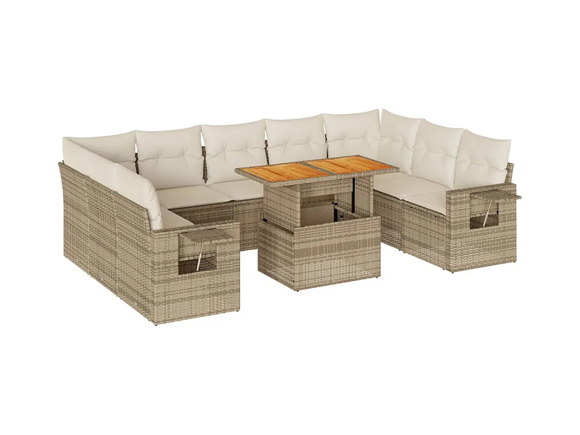 10 peças conj. sofás para jardim com almofadões vime PE/acácia bege
