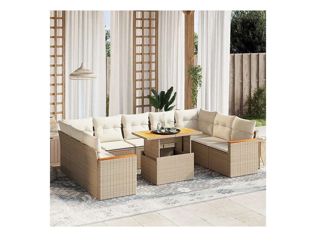 9 peças conjunto de sofás para jardim com almofadões vime PE bege