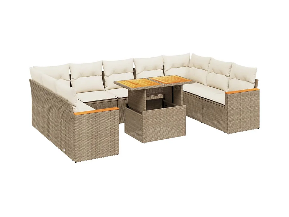 10 peças conjunto de sofás para jardim com almofadões vime PE bege