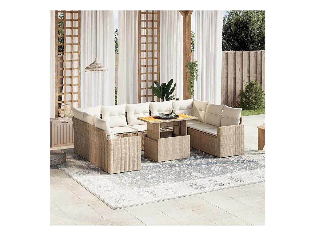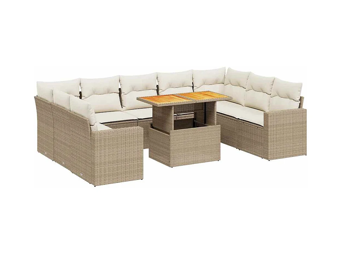 10 peças conjunto de sofás para jardim com almofadões vime PE bege