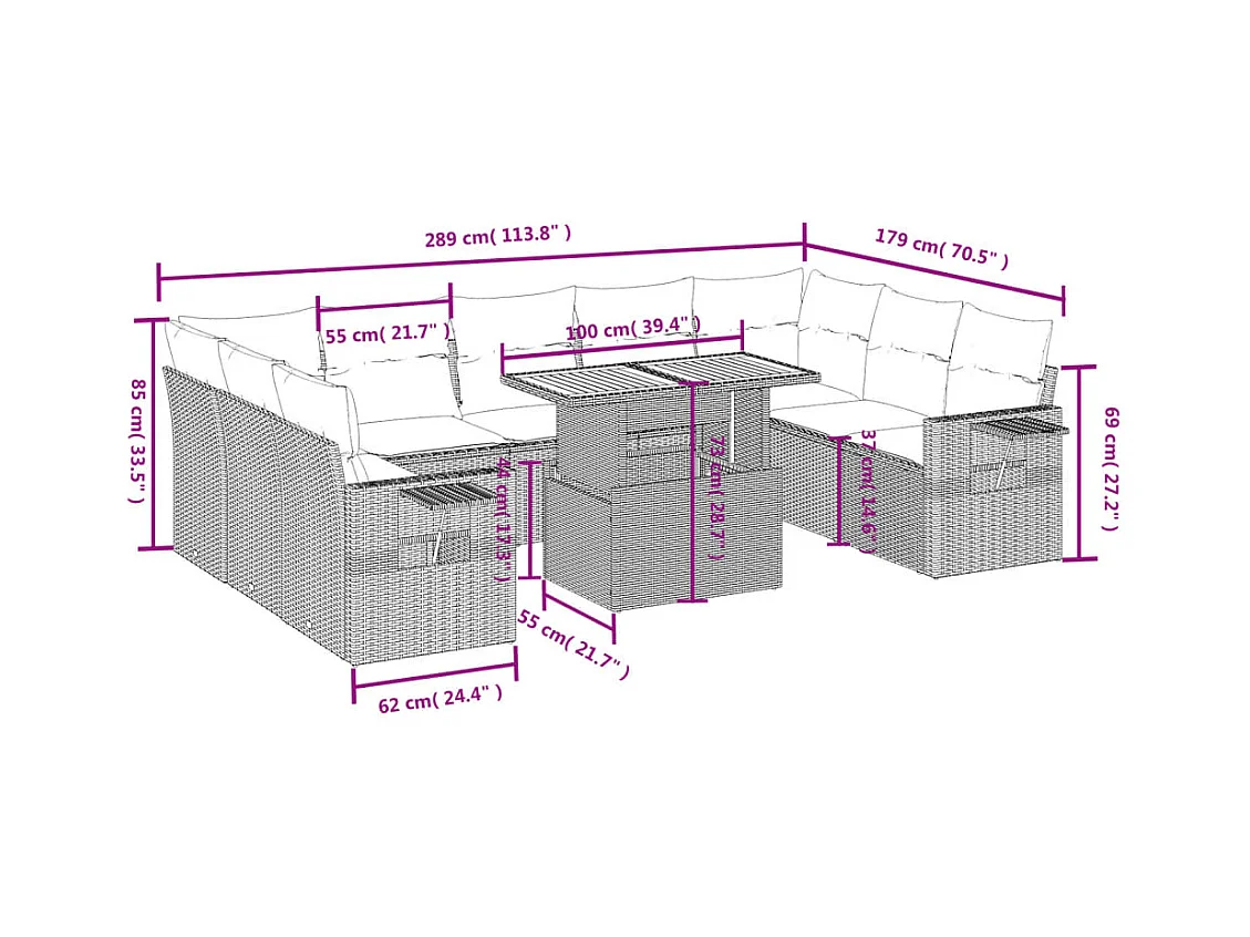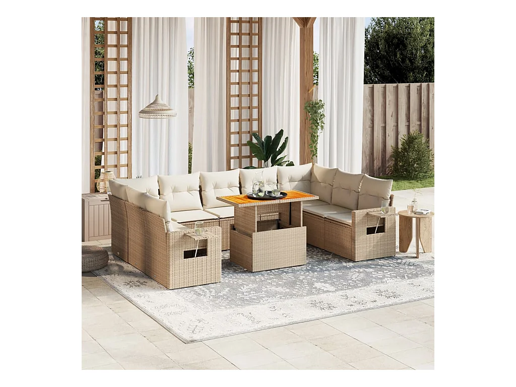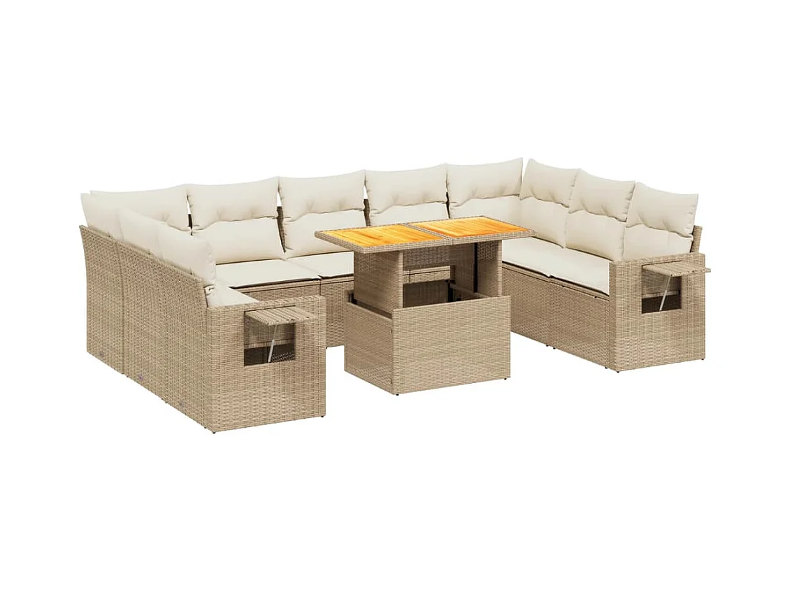 10 peças conjunto de sofás para jardim com almofadões vime PE bege