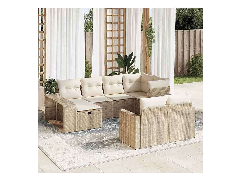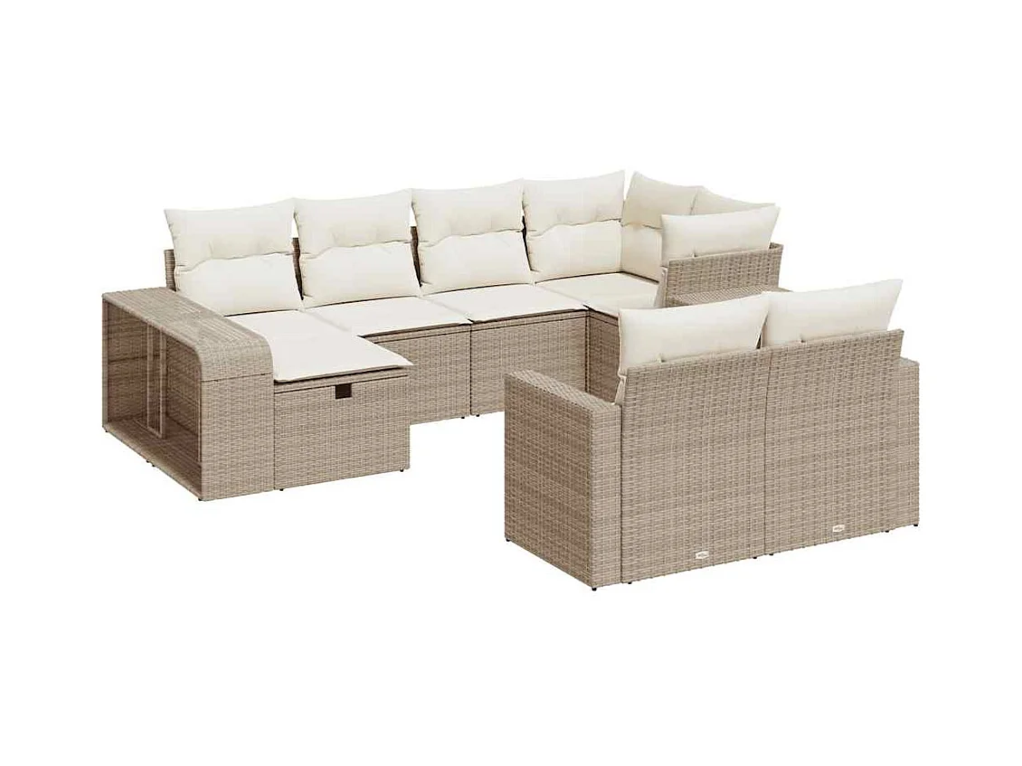 9 peças conjunto de sofás para jardim com almofadões vime PE bege