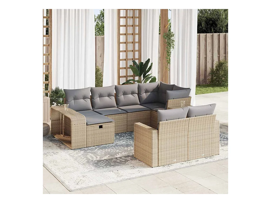 9 peças conjunto de sofás para jardim com almofadões vime PE bege