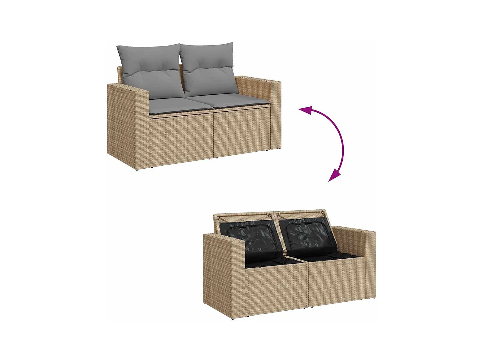 10 peças conj. sofás para jardim com almofadões vime PE/acácia bege