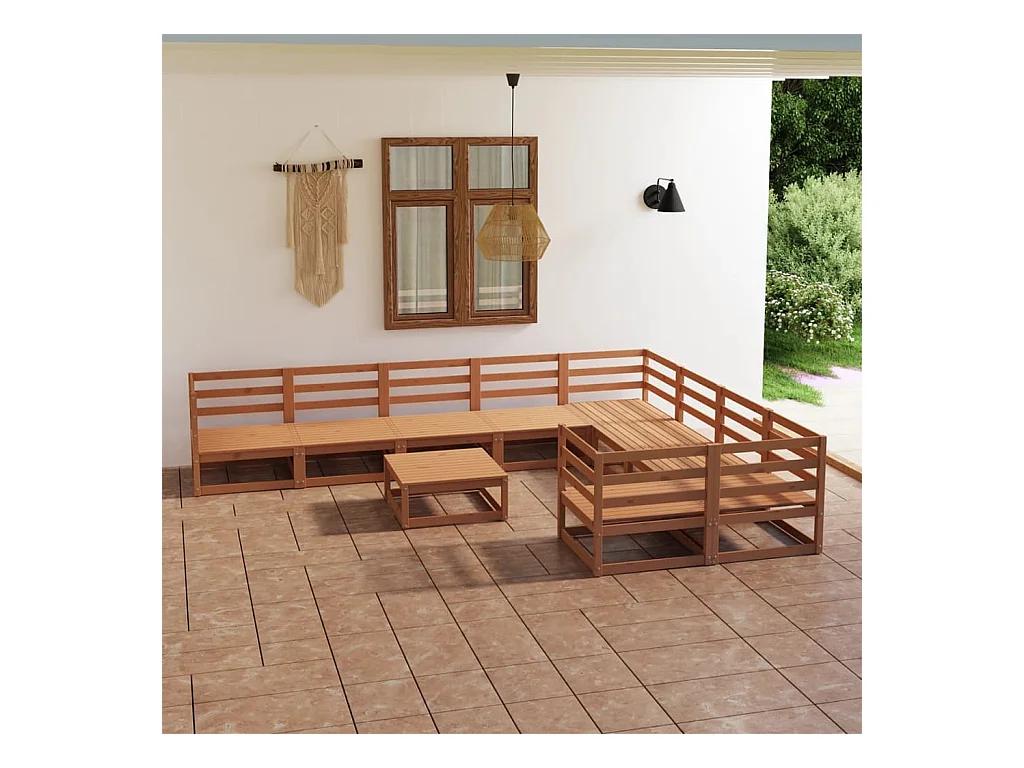 10 peças conjunto lounge de jardim pinho sólido castanho mel