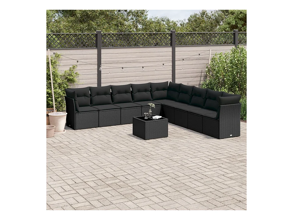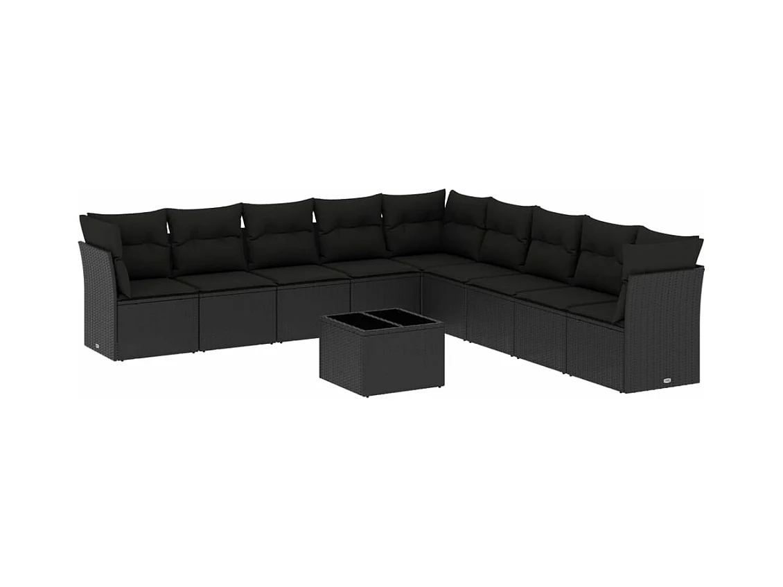 10 peças conjunto sofás de jardim c/ almofadões vime PE preto