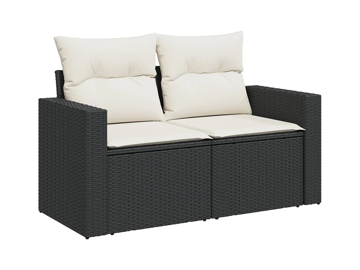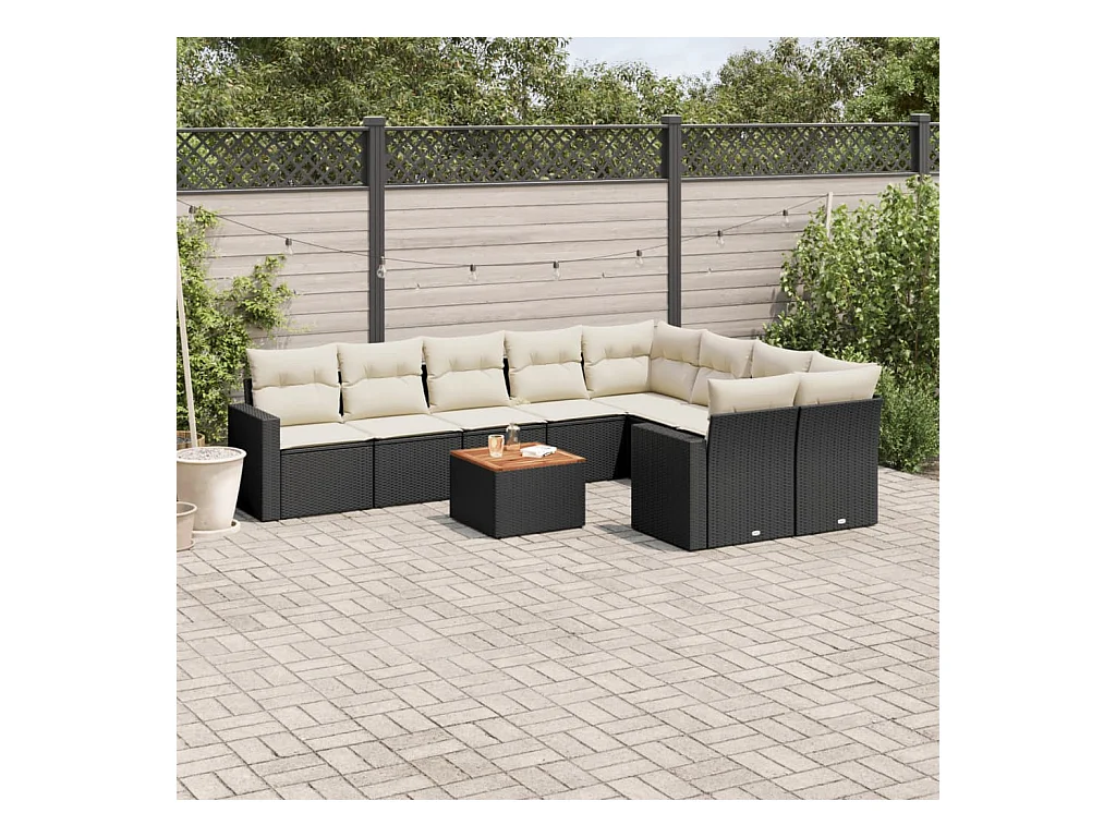 10 peças conjunto sofás de jardim c/ almofadões vime PE preto