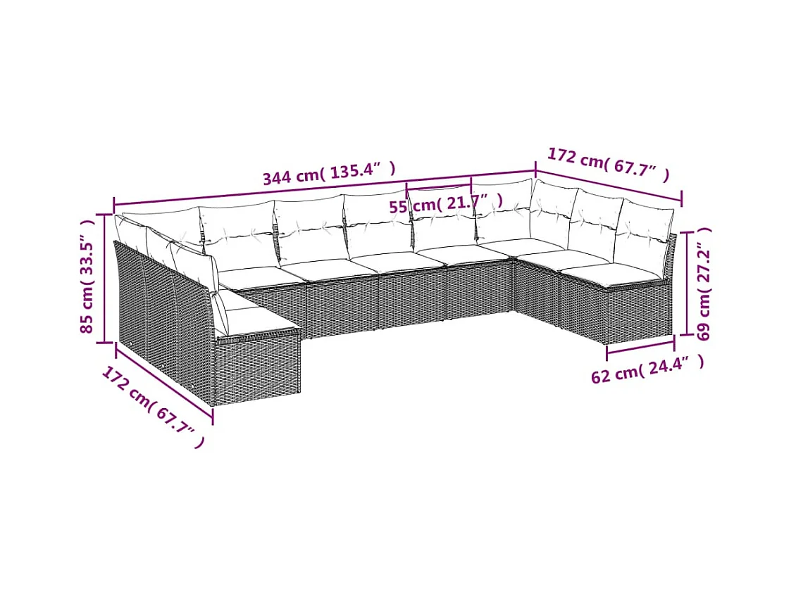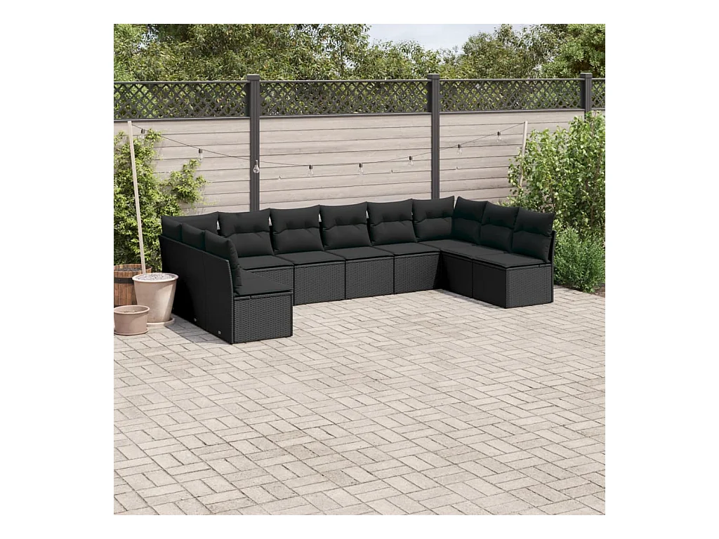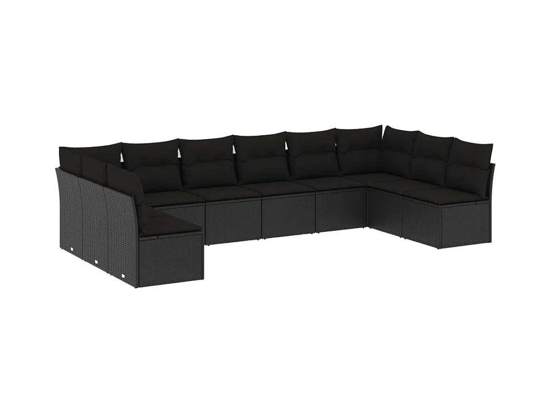 10 peças conjunto sofás de jardim c/ almofadões vime PE preto