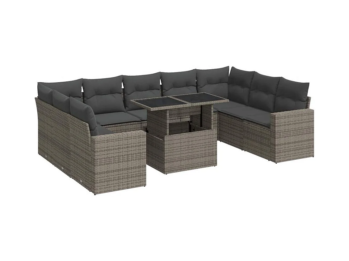 10 peças conjunto sofás de jardim com almofadões vime PE cinzento