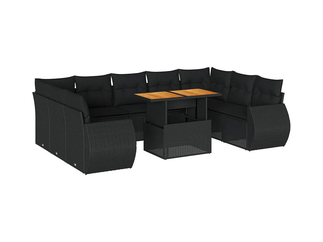 10 peças conjunto sofás jardim com almofadões vime PE/acácia preto