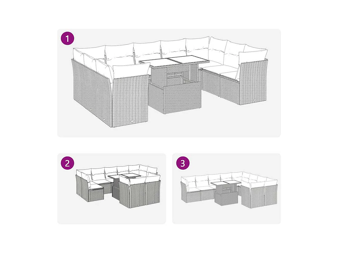 10 peças conjunto sofás de jardim com almofadões vime PE preto