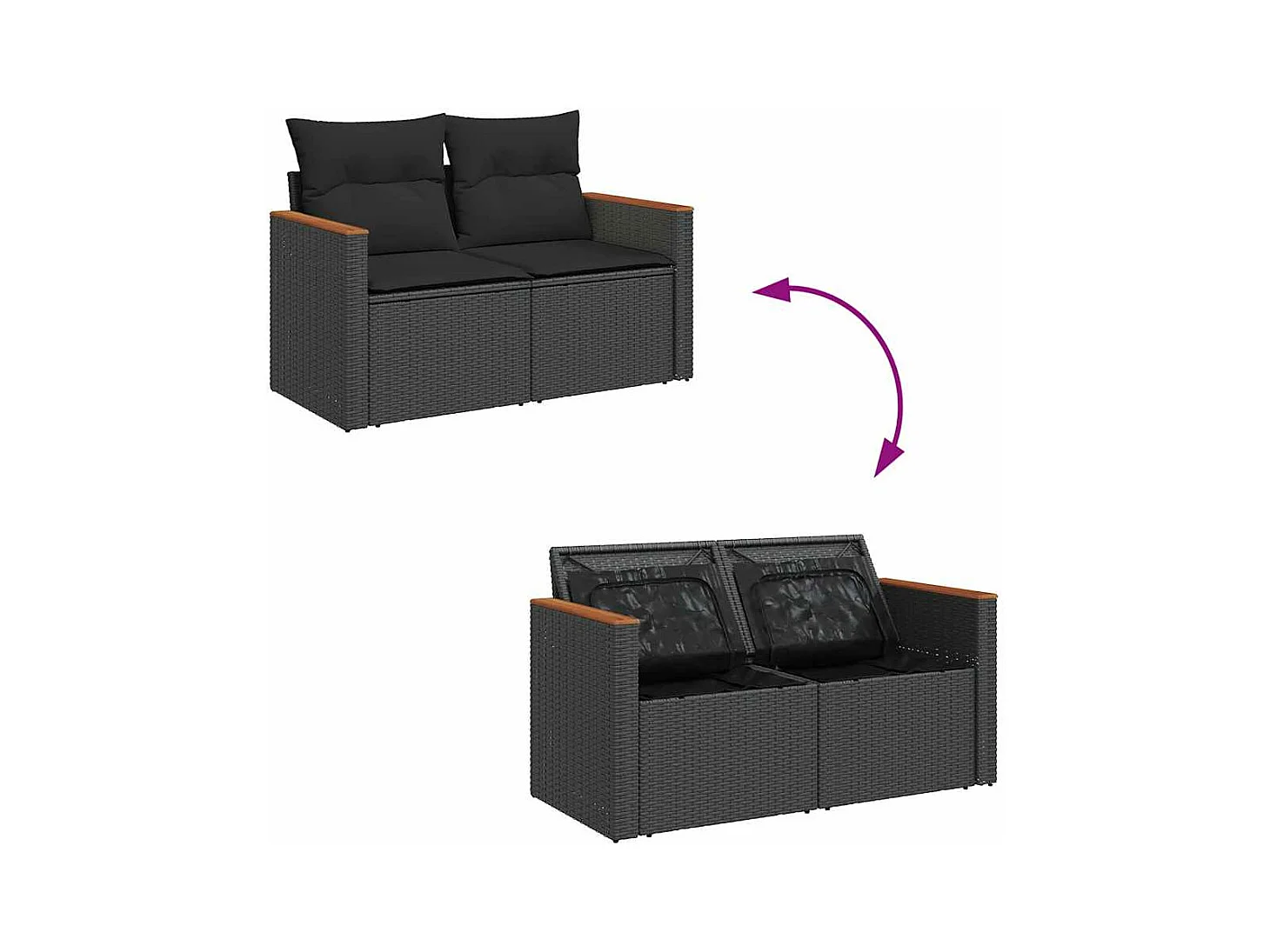 10 peças conjunto sofás jardim com almofadões vime PE/acácia preto
