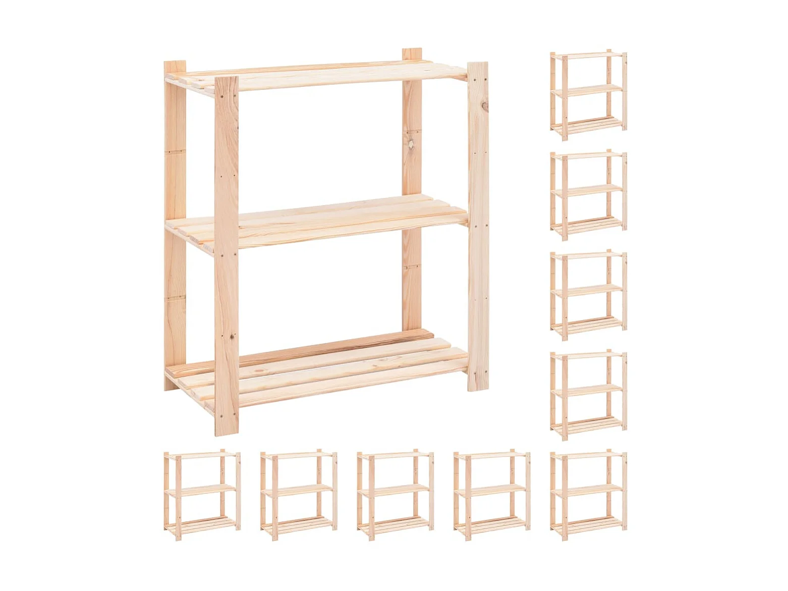 10 unidades arrumação 3 prateleiras 80x38x90cm pinho 150 kg PT294427