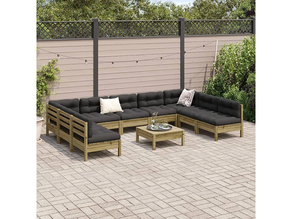 10peças conj. sofás jardim c/ almofadões madeira pinho impregnado