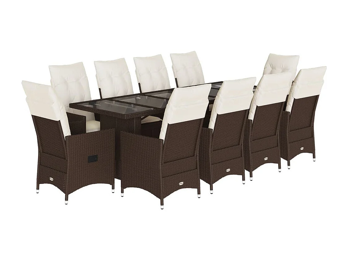 11 pcs conj. de bistrô p/ jardim c/ almofadões vime PE castanho