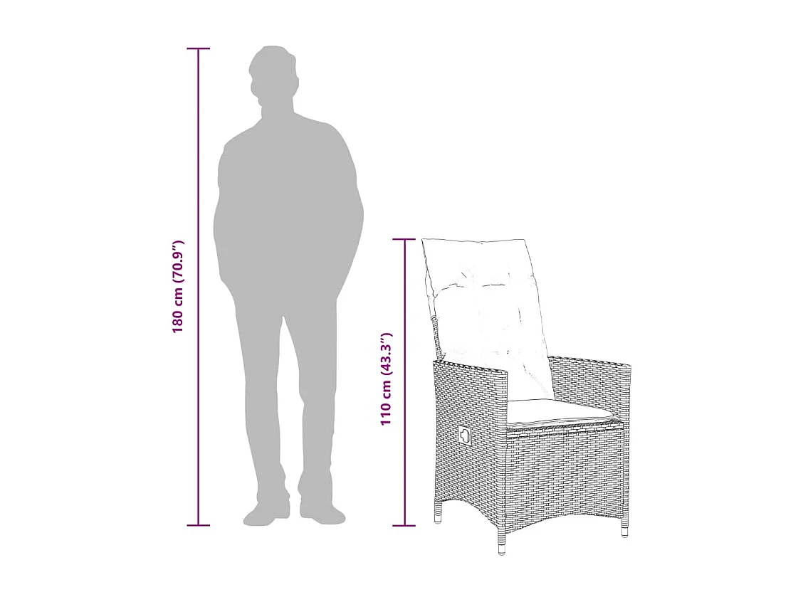 9 pcs conjunto jantar p/ jardim c/ almofadões vime PE castanho