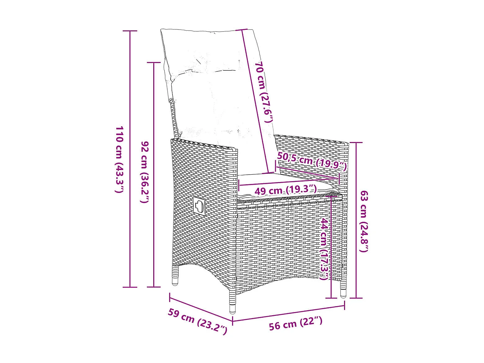 Espreguiçadeira convertível com almofadão vime PE castanho