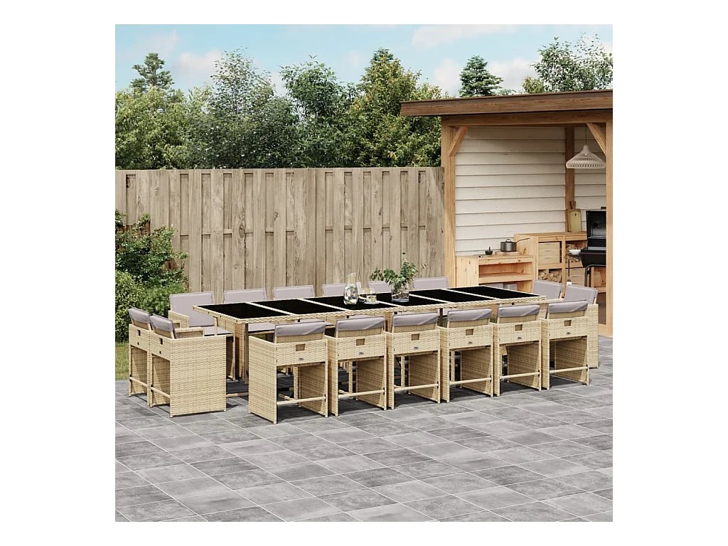 11 pcs conj. jantar jardim c/ almofadões vime PE bege misturado
