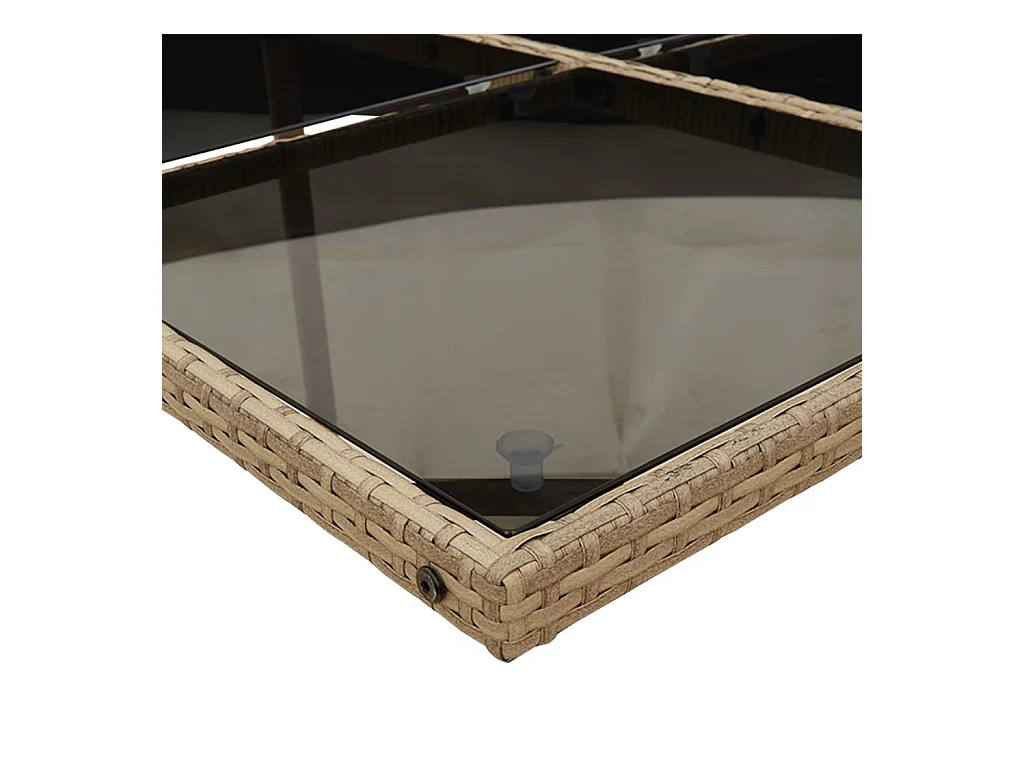 7 pcs conjunto de jantar p/ jardim com almofadões vime PE bege