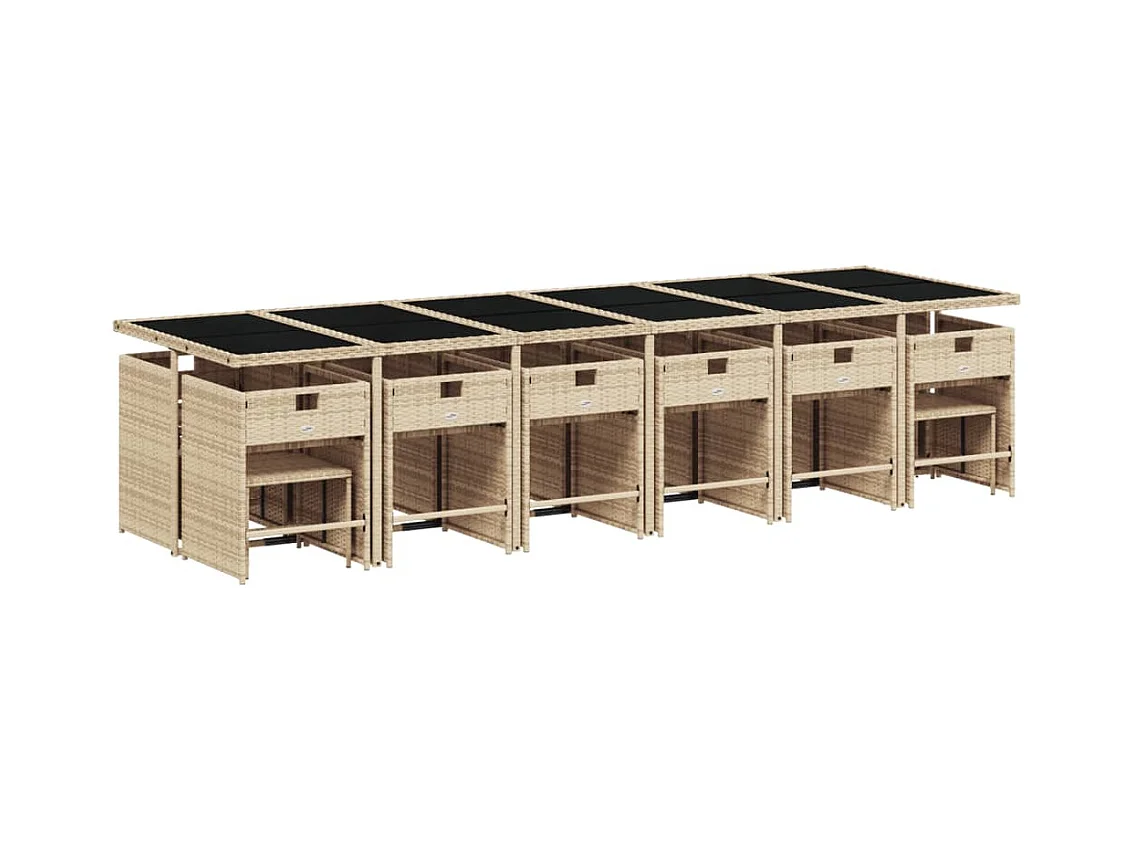 13 pcs conjunto de jantar p/ jardim com almofadões vime PE bege