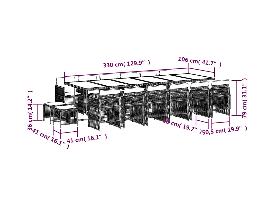 13 pcs conjunto jantar p/ jardim c/ almofadões vime PE cinzento