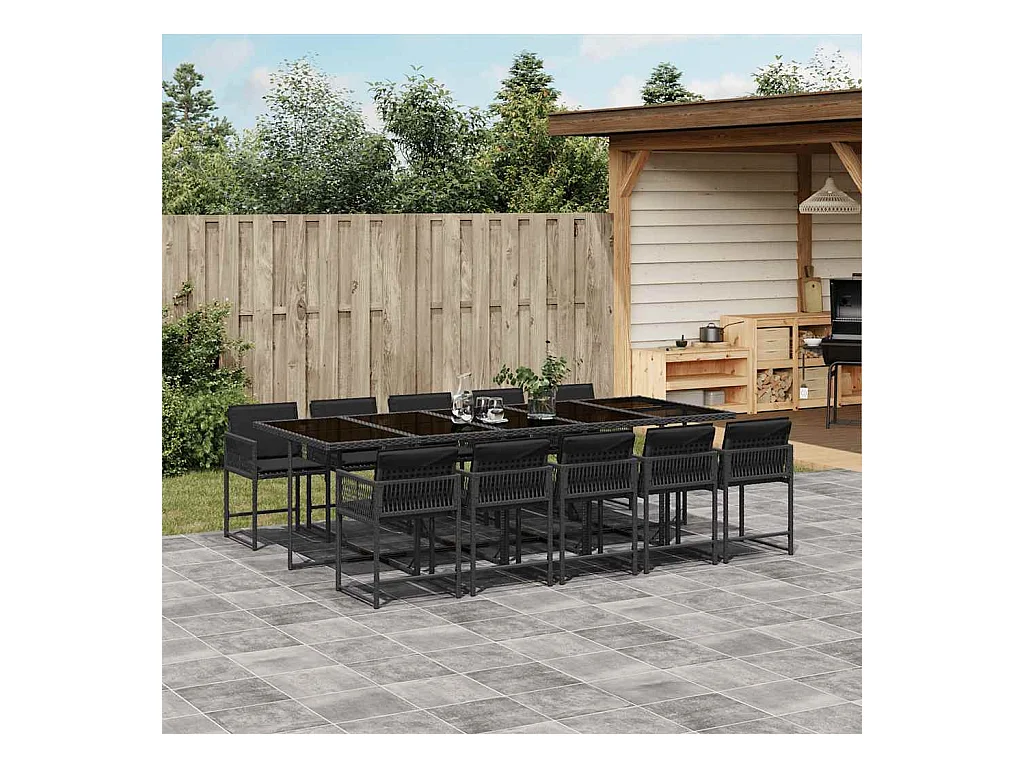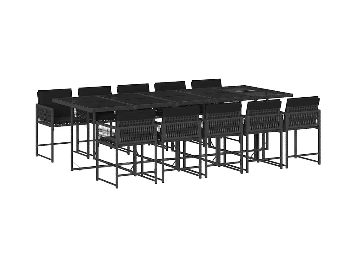 13 pcs conjunto de jantar p/jardim com almofadões vime PE preto