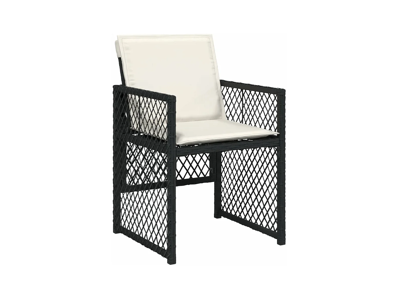 15 pcs conjunto de jantar p/jardim com almofadões vime PE preto
