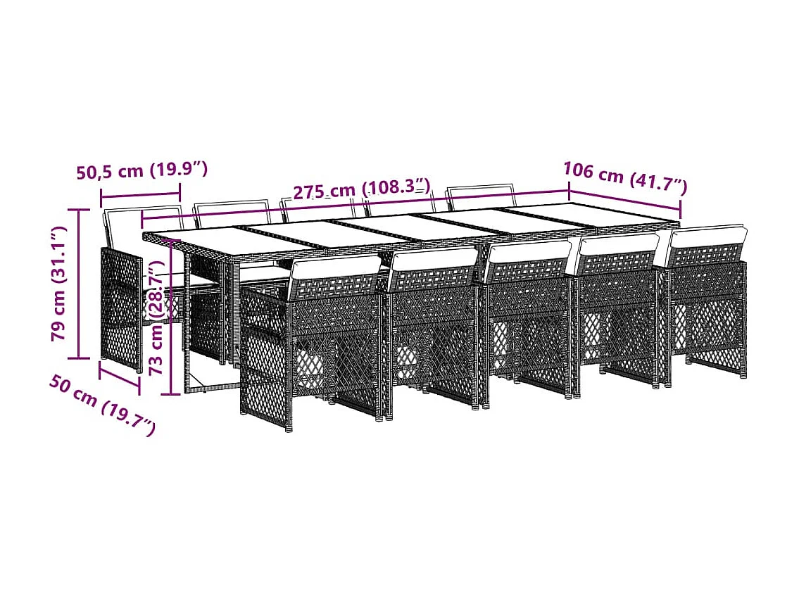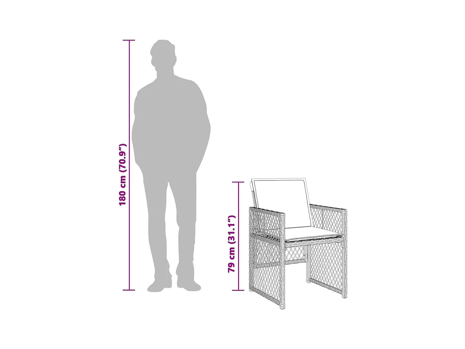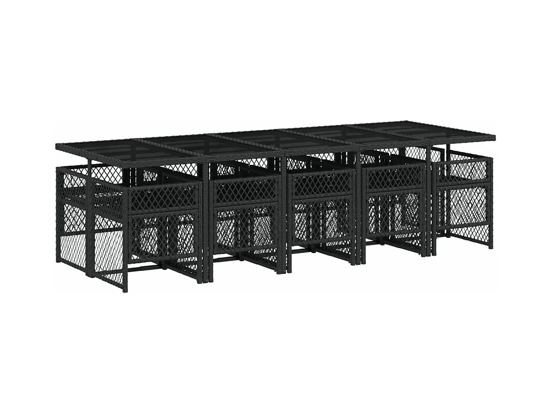 11 pcs conjunto de jantar p/ jardim c/ almofadões vime PE preto