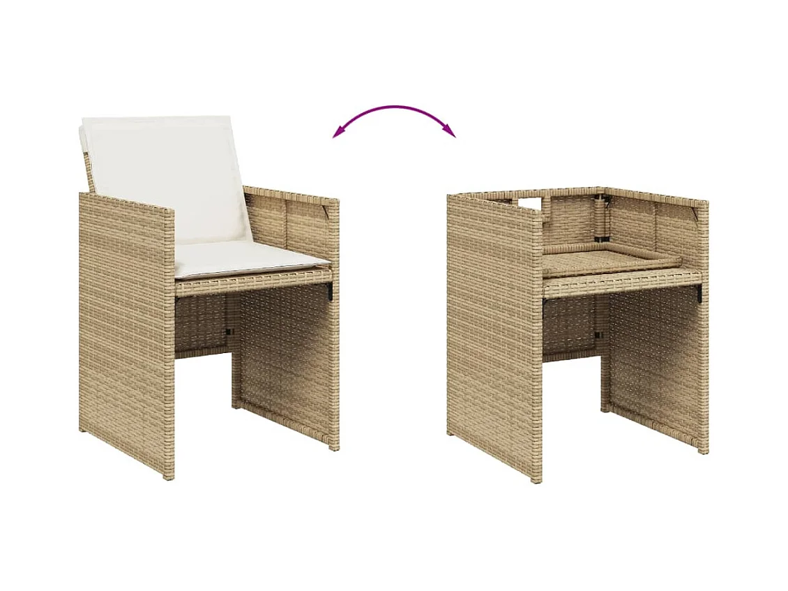 11 pcs conjunto de jantar p/ jardim com almofadões vime PE bege