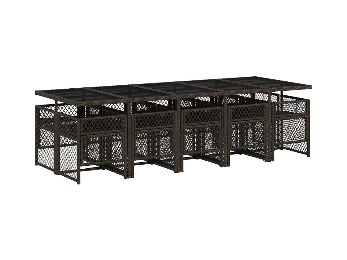 11 pcs conjunto jantar p/ jardim c/ almofadões vime PE castanho